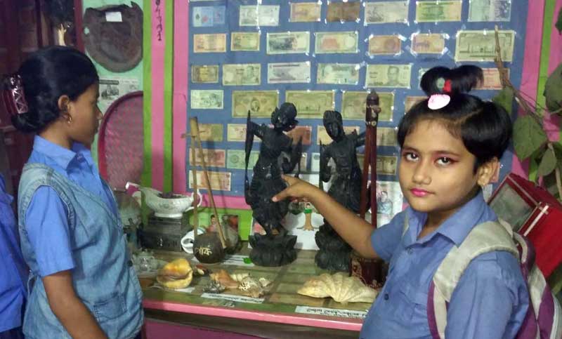 সংগৃহীত নিদর্শনের মধ্যে রয়েছে প্রাচীনকালের তৈরি ৬টি পিতলের পাত্র। এতে রক্ষিত ধন-দৌলত পাহারা দিচ্ছে দুটি বিষধর সাপ। দেশ-বিদেশের মুদ্রা কয়েন দিয়ে সাজানো ধনভাণ্ডারে বসানো হয়েছে প্লাস্টিকের সাপ। নামকরণ করা হয়েছে রত্নভাণ্ডার। পাশে রয়েছে দেড় শ বছরের পুরনো হাতির দাঁত ও সোয়াকেজি ওজনের সামগ্রিক ঝিনুক, ৫ শ গ্রাম ওজনের কড়িসহ নানা প্রাচীন নিদর্শন। এ ছাড়া ১৬৭ দেশের নোট ও কয়েন, ছোট্ট কুরআন শরীফ, বিভিন্ন সময়ের স্বর্ণ, রৌপ্য, তাম্র ও ধাতব মুদ্রা এবং বিভিন্ন প্রস্তর ও পোড়ামাটির ভাস্কর্য রয়েছে এখানে। সোনার চামচ, রুপার গ্লাস, চাঁদির প্লেট ও মুকুট, পিতলের বিভিন্ন রকম প্রাচীন বাটি, সিঁদুরদানিসহ রয়েছে নানা প্রাচীন ঐতিহ্য।