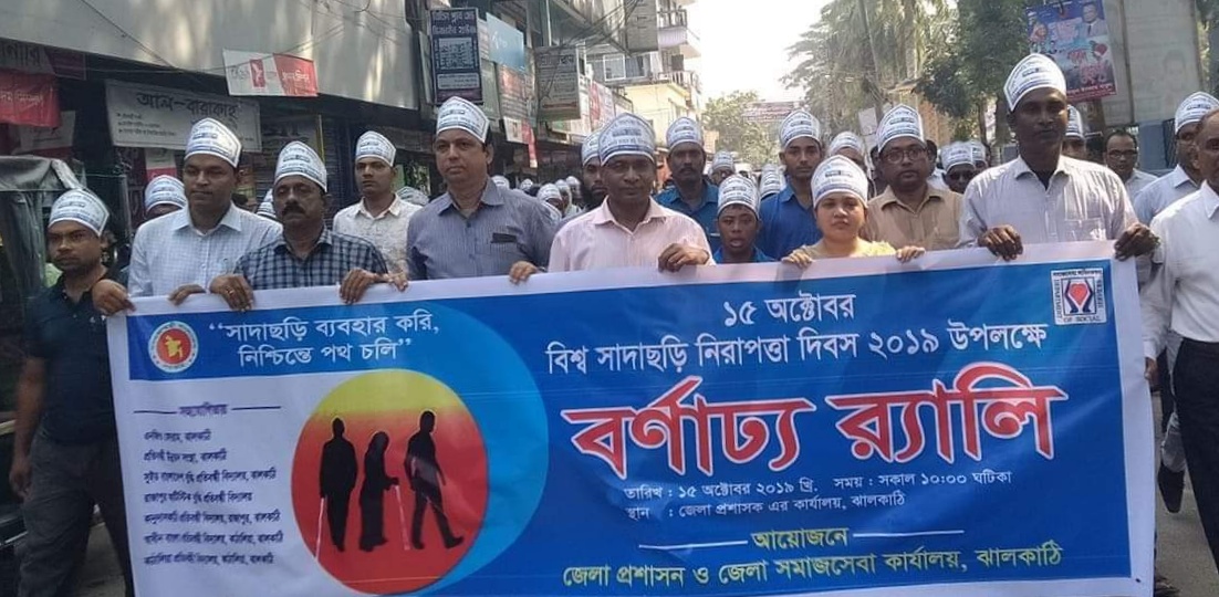 রিপোর্ট ইমাম বিমান :-ঝালকাঠিতে বিশ্ব সাদাছড়ি নিরাপত্তা দিবস উপলক্ষে বণাঢ্য র্যালির মধ্যদিয়ে বিশ্ব সাদাছড়ি নিরাপত্তা দিবস ২০১৯ উদযাপন। ” সাদাছড়ি ব্যবহার করি, নিশ্চিতে পথে চলি ” এই প্রতিপাদ্যকে সামনে রেখে জেলা প্রশাসন ও জেলা সমাজসেবা অধিদপ্তর কতৃক যৌথভাবে আয়োজিত র্যালিটি মঙ্গলবার ১৫ অক্টোবর সকাল ৯টায় জেলা প্রশাসক কার্যালয়ের প্রধান ফটকে থেকে আয়োজিত বর্ণাঢ্য র্যালির মাধ্যমে এক সোভাযাত্রা বের করে শহরের প্রধান প্রাধান সড়ক প্রদক্ষিন শেষে একই স্থানে এসে শেষ হয়।
