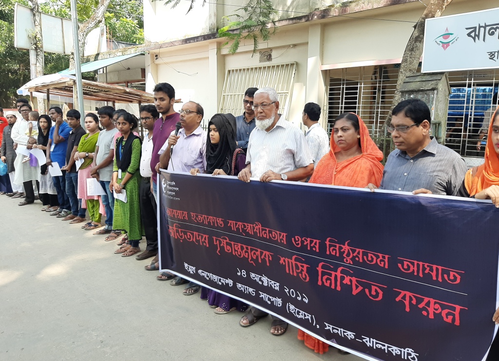 ঝালকাঠিতে বুয়েট ছাত্র আবরার হত্যার ন্যায়বিচার দাবীতে সনাকের মানববন্ধন