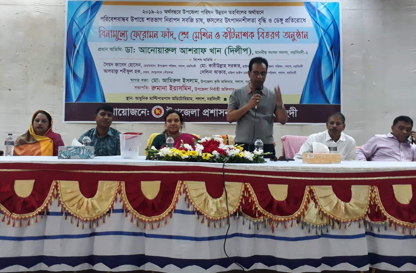 আনুয়ার হোসনে আনুঃ ২৪-১০-২০১৯ ইং রোজঃ বৃহস্পতবিার পলাশ উপজলো আধুনকি মাল্টপিারপাস অডটিোরয়িামে পলাশ উপজলো নর্বিাহী অফসিার রুমানা ইয়াসমনি এর সভাপত্বতিে ২০১৯-২০র্অথবছরে উপজলো পরষিদ উন্নয়ন তহবলিরে র্অথায়ানে পরবিশেবান্ধব উপায়ে শতভাগ নরিাপদ সবজি চাষ, ফসলরে উৎপাদনশীলতা বৃদ্ধি ও ডঙ্গেু প্রতরিোধে বনিামূল্যে কৃষকদরে মধ্যে ফরেোমন ফাঁদ, স্প্রে মশেনি ও কীটনাশক বতিরণ করনে এবং বক্তব্য রাখনে উক্ত অনুষ্ঠানরে প্রধান অতথিি – জনাবঃ আলহাজ্ব ডাঃ আনোয়ারুল আশরাফ খান (দলিীপ), সংসদ সদস্য, নরসংিদী-২ পলাশ,