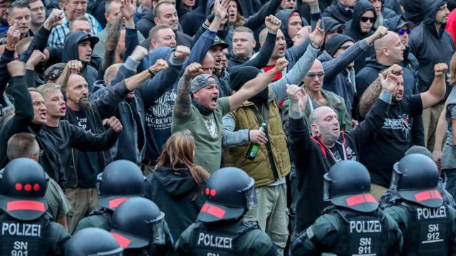 কেমনিজ শহরে নব্য নাৎসিদের বিক্ষোভ চলাকালে সাংবাদিক, ভিন্নমতের বিক্ষোভকারী ও বিদেশিদের ধাওয়ার মতো আচরণ নিয়ে চ্যান্সেলর আঙ্গেলা ম্যার্কেল বলেছিলেন, এমন ঘটনা জার্মানিতে কোনোভাবেই গ্রহণযোগ্য নয়।