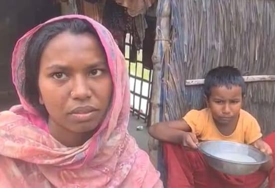 অভাবের তাড়নায় ভাতের মাড় খেয়ে দিন পার করছে আঁখিসহ তার ভুমিহীন গৃহহীন পরিবার