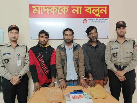 ইয়াবা, গাঁজা, মোবাইলসেট ও মাদক বিক্রির নগদ অর্থ উদ্ধারপূর্বক আপন দুই ভাইসহ আটক ৩ পলাতক ১