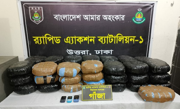 এরই ধারাবাহিকতায় ২৫ ফেব্রুয়ারি ২০২৬ ইং তারিখ আনুমানিক ২৩.৪০ ঘটিকায় র্যাব-১, উত্তরা, ঢাকা এর একটি আভিযানিক দল গোপন সংবাদের ভিত্তিতে জানতে পারে যে, ডিএমপি ঢাকার তুরাগ থানাধীণ কামারপাড়া ইস্ট ওয়েস্ট মেডিকেল কলেজ সংলগ্ন তাহের মোল্লা হোটেল এন্ড রেস্টুরেন্টের পাশে ভান্ডারীর মাঠের সামনে পাকা রাস্তার উপর ০১ টি কার্ভাট ভান যোগে মাদক দ্রব্য গাঁজাসহ ০২ জন মাদক ব্যবসায়ী অবস্থান করছে। প্রাপ্ত সংবাদের ভিত্তিতে আভিযানিক দলটি বর্ণিত স্থানে অভিযান পরিচালনা করে মাদক ব্যবসায়ী ১। মোঃ আব্দুল মালেক @ মালেক খলিফা (৪০), পিতা-মৃত আব্দুস সাত্তার, গ্রাম-খেপুপাড়া, থানা-কলাপাড়া, জেলা-পটুয়াখালী এবং ২। মোঃ রাসেল (২৮), পিতা-আমির হোসেন, গ্রাম-ধনিয়াগুটাউন, থানা-ভোলা সদর, জেলা-ভোলাদের’কে গ্রেফতার করা হয়। এ সময় ধৃত আসামীদের নিকট হতে ৮৬ কেজি মাদক দ্রব্য গাঁজা যার আনুমানিক মূল্য ২৫,৮০,০০০/-(পঁচিশ লক্ষ আশি হাজার) টাকা, ০১ টি BLUE/YELLOW রংয়ের ASHOKE LEYLAND ব্র্যান্ডের কার্ভাড ভ্যান, ০৩ টি বাটন মোবাইল ফোন এবং ০২ টি সীম কার্ডসহ উদ্ধার করা হয়।