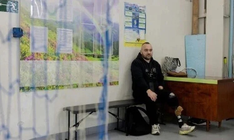 তার পরনে সামরিক পোশাক নেই এখন। কালো ট্র্যাকস্যুট পরা; কৃত্রিম অঙ্গ লাগানো। পাভলোগ্রাদ শহরের একটি ফুটবল টুর্নামেন্ট চলাকালে এসব কথা বলেন তিনি। আহত হওয়ার আগে তিনি সেখানে খেলতেন।