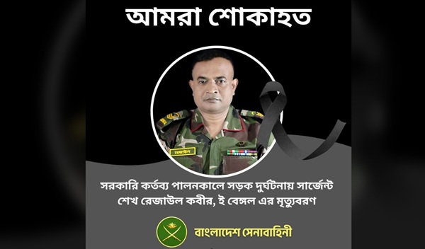 কর্তব্য পালনকালে সড়ক দুর্ঘটনায় সেনাসদস্যের মৃত্যু