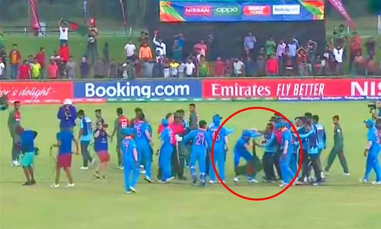 অনূর্ধ্ব-১৯ বিশ্বকাপের ফাইনালে বাংলাদেশের কাছে হেরে গিয়ে অখেলোয়াড়সুলভ আচরণ করলেন ভারতের যুব ক্রিকেটাররা। শুধু তাই নয়, ভারতীয় ক্রিকেটারদের সঙ্গে হাতাহাতি এমনকী বাংলাদেশের জাতীয় পতাকা কেড়ে নেওয়ার ঘটনাও ঘটেছে! রবিবার ফাইনাল