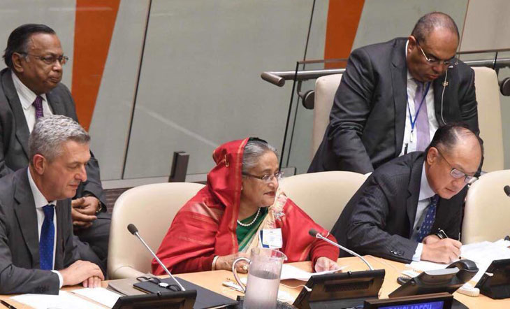 রোহিঙ্গা সংকট স্থায়ী সমাধানের লক্ষ্যে জাতিসংঘে তিন দফা সুপারিশ উপস্থাপন করেছেন প্রধানমন্ত্রী শেখ হাসিনা। স্থানীয় সময় সোমবার সকালে নিউইয়র্কে জাতিসংঘ সদর দপ্তরে শরণার্থীবিষয়ক বৈশ্বিক প্রভাব শীর্ষক এক উচ্চপর্যায়ের বৈঠকে তিন