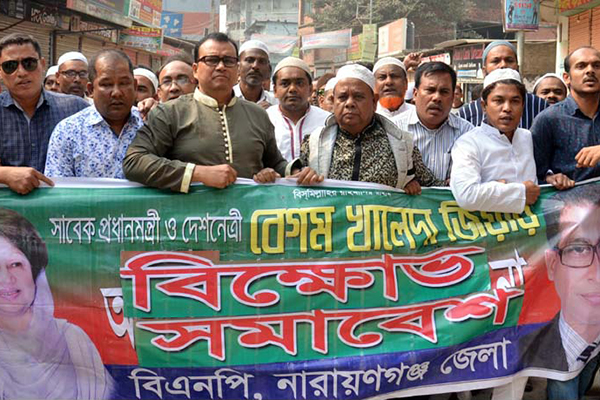 বিএনপি চেয়ারপার্সন বেগম খালেদা জিয়ার সাজার রায়ের প্রতিবাদে এবং তার মুক্তির দাবিতে নারায়ণগঞ্জ জেলা বিএনপি বিক্ষোভ মিছিল করেছে। জুম্মার নামাজ শেষে সিদ্ধিরগঞ্জে জেলা বিএনপির অস্থায়ী কার্যালয়ের সামনের সড়কে এই বিক্ষোভ