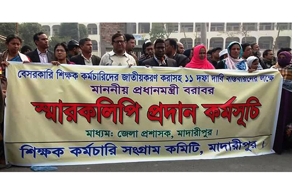 শিক্ষা জাতীয়করণসহ ১১ দফা দাবিতে শিক্ষক-কর্মচারীরা বিক্ষোভ মিছিল ও সমাবেশ করেছে বাংলাদেশ শিক্ষক সমিতি ও শিক্ষক কর্মচারী সংগ্রাম কমিটি জেলা শাখার সদস্যরা। রবিবার সকাল ১১টার দিকে মাদারীপুর জেলা প্রশাসক কার্যালয়ের