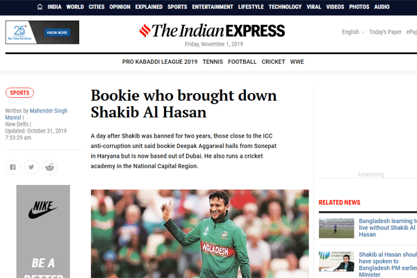 দলের ভেতরকার তথ্য জানার জন্য দীপক আগরওয়াল যোগাযোগ করেছিলেন বাংলাদেশি ক্রিকেট তারকা সাকিব আল হাসানকে। দীপককে সহায়তা না করলেও বিষয়টি আইসিসিকে না জানানোয় শাস্তি পেতে হয়েছে সাকিবকে। নিজেকে টি২০ লীগের