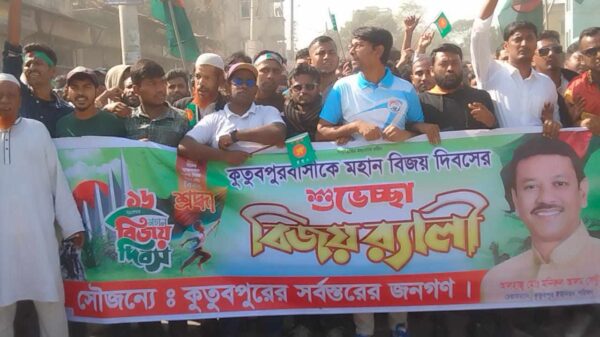নিজস্ব প্রতিবেদক: মিহান বিজয় দিবস উপলক্ষ্যে নারায়ণগঞ্জ সদর উপজেলার কুতুবপুরে চারবারের জনপ্রিয় চেয়ারম্যান আলহাজ মো. মনিরুল আলম সেন্টুর পক্ষে বিজয় র্যালি অনুষ্ঠিত হয়েছে। সোমবার (১৬ ডিসেম্বর) সকালে কুতুবপুরের সর্বস্তরের জনগণের