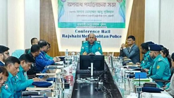 বিশেষ প্রতিনিধি :আরএমপি সদর দপ্তরের কনফারেন্স রুমে ডিসেম্বর ২০২৪ মাসের অপরাধ পর্যালোচনা সভা অনুষ্ঠিত হয়ছে। এ সভায় সভাপতিত্ব করেন রাজশাহী মেট্রোপলিটন পুলিশের (আরএমপি) পুলিশ কমিশনার মোহাম্মদ আবু সুফিয়ান।সোমবার সকাল১০টায়