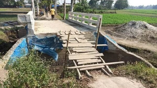 জেলা প্রতিনিধি: শেষ হয়নি সেতুর কাজ, দু’পাশে রাস্তা পারাপারের জন্য বানানো হয়েছে কাঠের তৈরি মই। অধিকাংশ কাঠ ভেঙে যাওয়া আর নিচে পানির বিশাল গর্ত থাকায় সেতুটি মরণ ফাঁদে রুপ নিয়েছে।