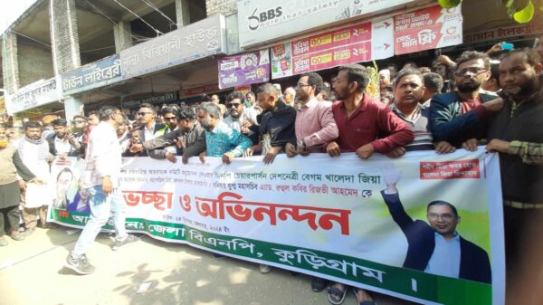 কুড়িগ্রাম প্রতিনিধি : বাংলাদেশ জাতীয়তাবাদী দল বিএনপি’র কুড়িগ্রাম জেলা নবগঠিত আহবায়ক কমিটির আনন্দ মিছিল অনুষ্ঠিত হয়েছে। বিএনপির কেন্দ্রীয় নেতৃবৃন্দকে শুভেচ্ছা ও অভিনন্দন সম্বলিত ব্যানার নিয়ে অঙ্গ ও সহযোগী সংগঠনের নেতাকর্মীরা দলে