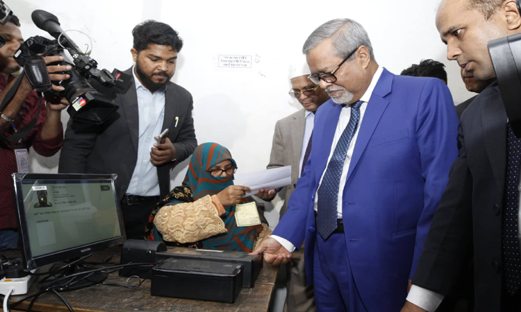 ঢাকা সিটি নির্বাচন উপলক্ষে রাজধানীর উত্তরার ৫ নম্বর সেক্টরের আইএএস স্কুল অ্যান্ড কলেজ কেন্দ্রে ভোট দিয়েছেন প্রধান নির্বাচন কমিশনার কে এম নূরুল হুদা। তবে এসময় ইভিএমে ফিংগার প্রিন্ট মেলেনি তার।