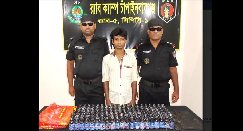 চাঁপাইনবাবগঞ্জ: জেলার সদর উপজেলার বহরমপুর তাঁতীপাড়া এলাকা থেকে আমদানি নিষিদ্ধ ভারতীয় ফেনসিডিল উদ্ধার করেছে র্যাপিড অ্যাকশন ব্যাটালিয়নের সদস্যরা। এ সময় উৎপল চন্দ্র ভাস্কর (২৪) নামে একজনকে আটক করা হয়। র্যাব-৫