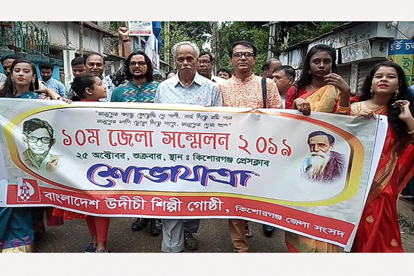 উদীচী শিল্পী গোষ্ঠী কিশোরগঞ্জ জেলা সংসদের ১০ম সম্মেলন উদ্বোধন করা হয়েছে। আজ শুক্রবার সকালে কিশোরগঞ্জ প্রেসক্লাব মিলনায়তনে জাতীয় সঙ্গীতের মধ্য দিয়ে সম্মেলন উদ্বোধন করেন বিশিষ্ট শিক্ষাবিদ অধ্যাপক প্রাণেশ কুমার চৌধুরী।